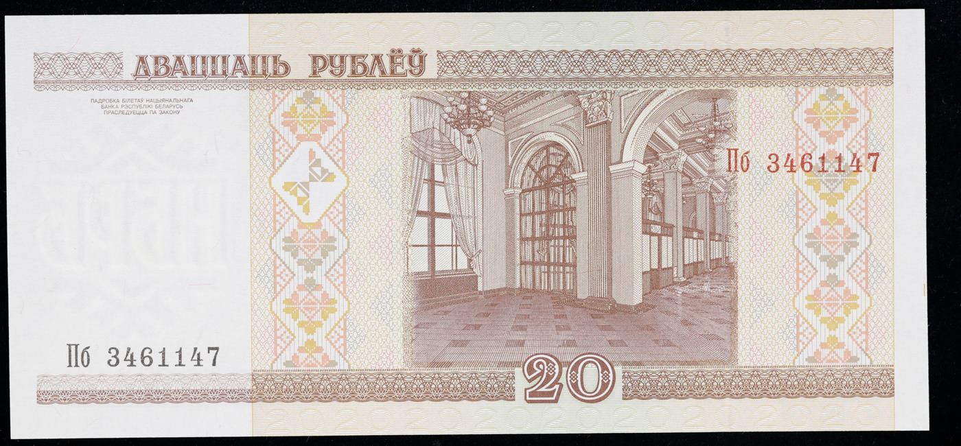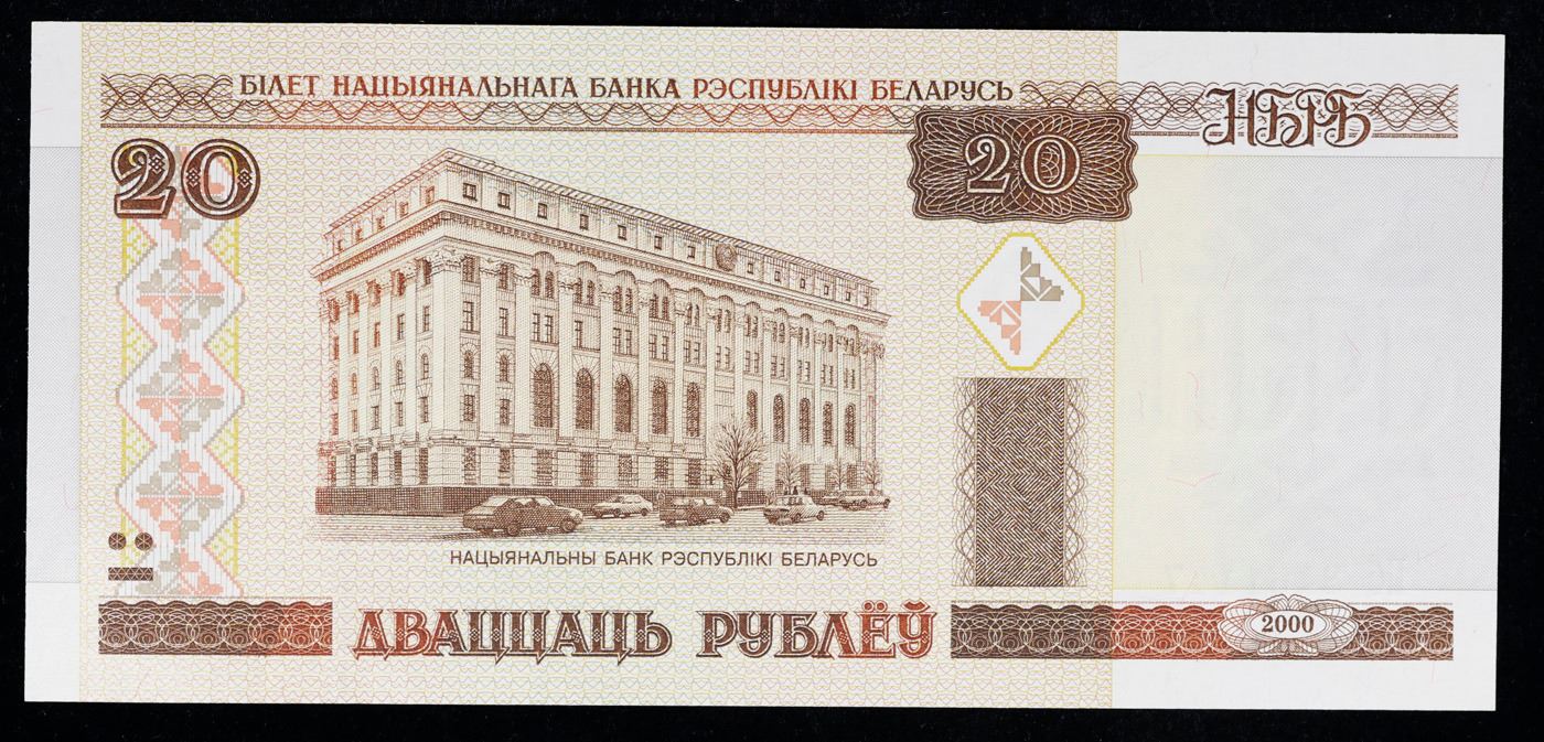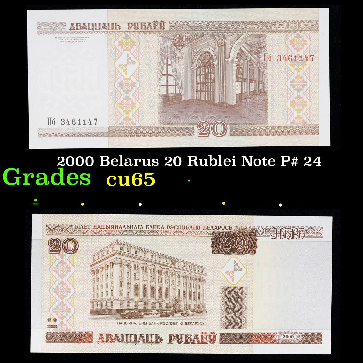 2000 Belarus 20 Rublei Note P# 24 Grades Gem CU.