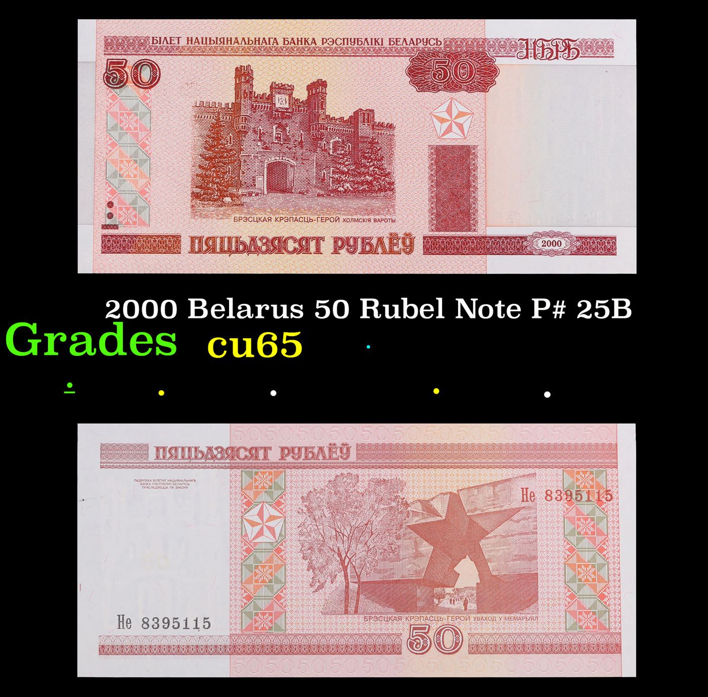 2000 Belarus 50 Rubel Note P# 25B Grades Gem CU.
