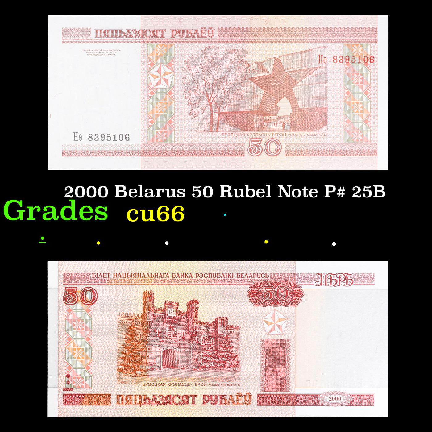 2000 Belarus 50 Rubel Note P# 25B Grades Gem+ CU.