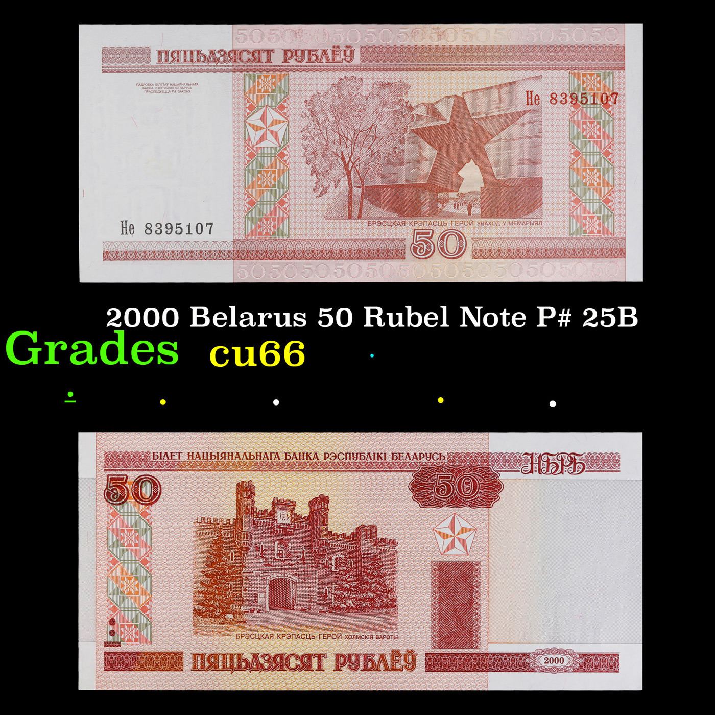 2000 Belarus 50 Rubel Note P# 25B Grades Gem+ CU.