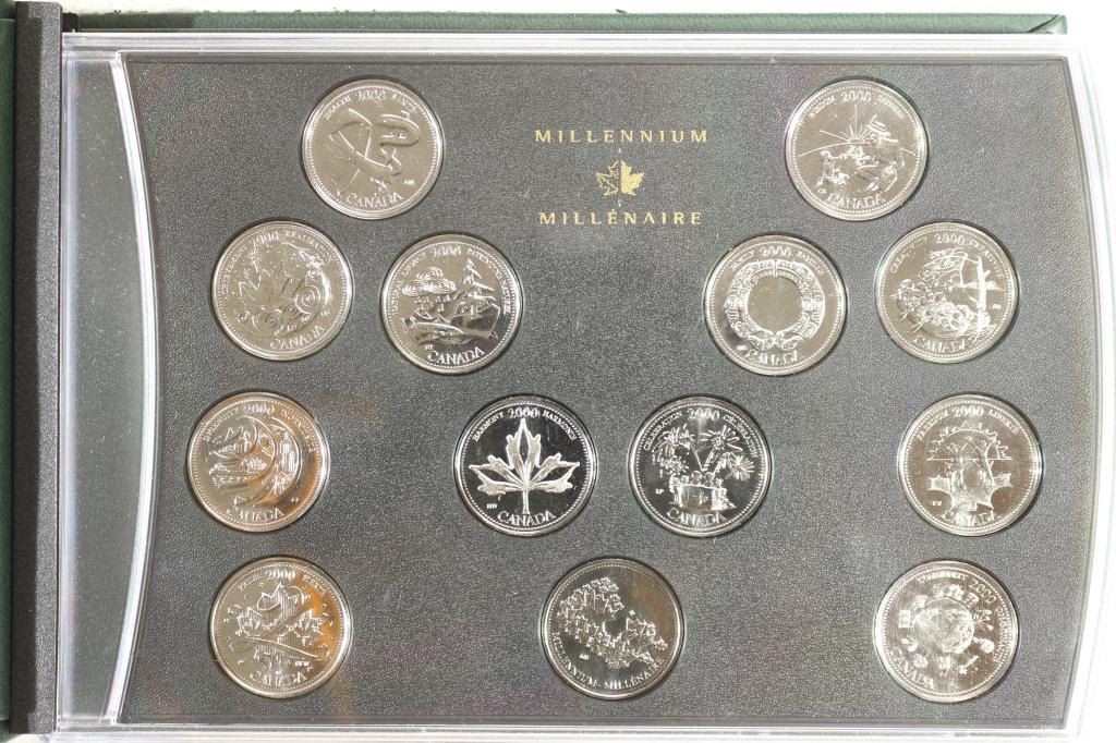 ALL 12-MILLENNIUM QUARTERS AND A MILLENNIUM MEDALLION, ORIGINAL ROYAL CANADIAN MINT PACKAGING
