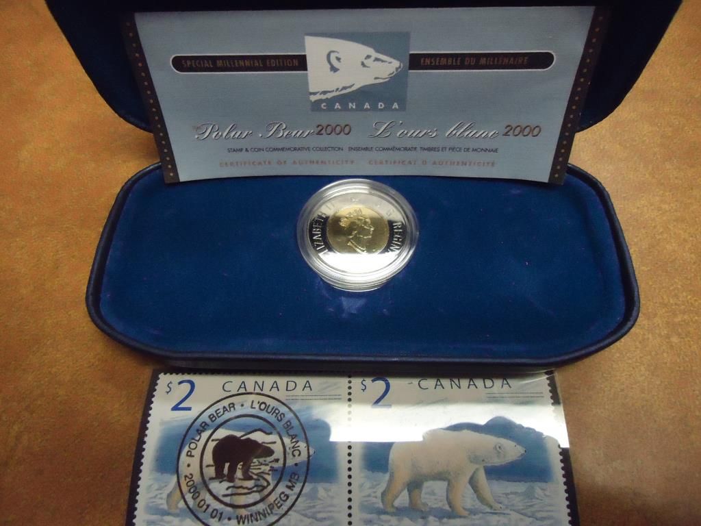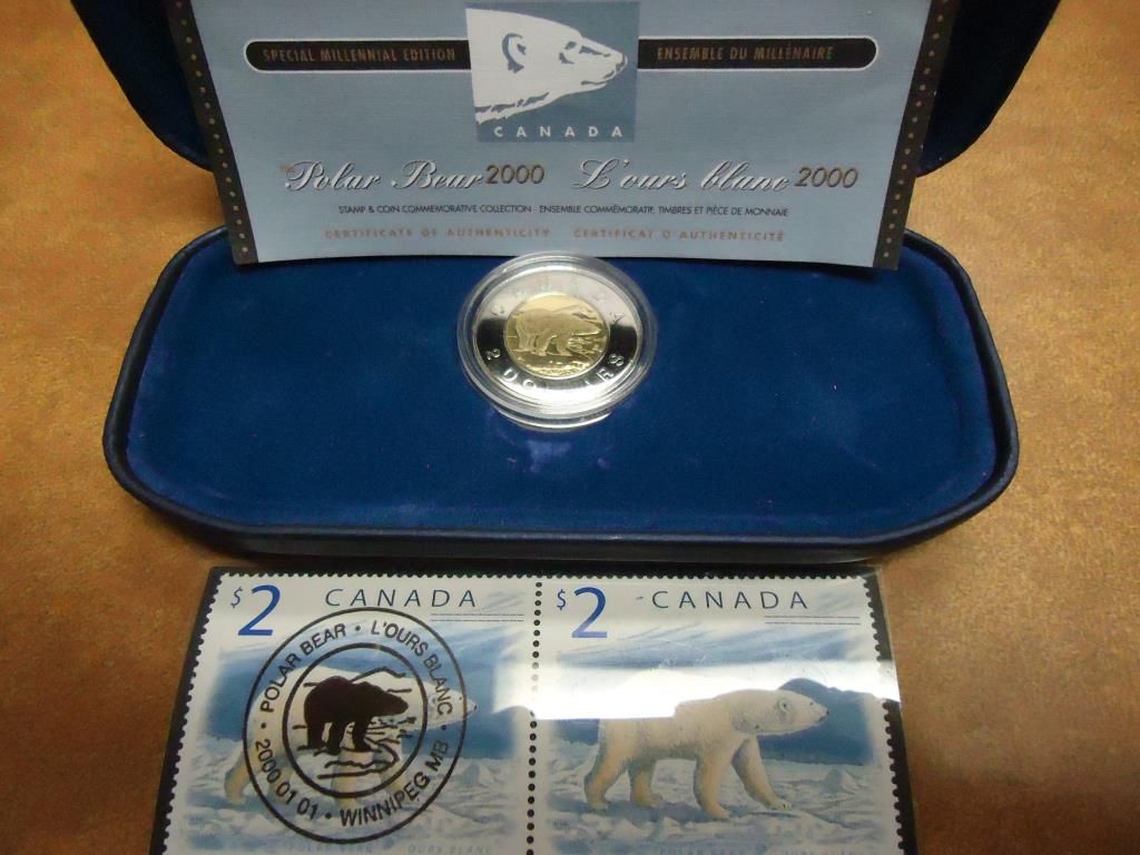 CONTAINS: $2 POLAR BEAR AND 2 STAMPS, ORIGINAL ROYAL CANADIAN MINT PACKAGING