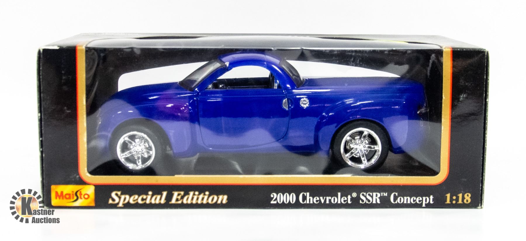 2000 CHEVROLET SSR CONCEPT - 1/18 SCALE **ALL ITEMS MUST BE REMOVED BY 5PM SATURDAY, APRIL 22ND, 2023. ALL REMAINING ITEMS WILL BE SUBJECT TO A $6.00 PER DAY STORAGE CHARGE. ANY ITEMS REMAINING AFTER MONDAY, MAY 8TH, 2023 WILL BE CONSIDERED FORFEITED. NO REFUNDS WILL BE ISSUED FOR FORFEITED ITEMS.** TO SCHEDULE A PICK UP APPOINTMENT CLICK HERE