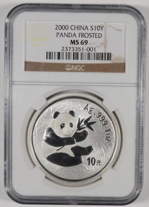 2000 CHINESE SILVER 10 YAUN PANDA, FROSTED, NGC MS-69 SUPER RARE!