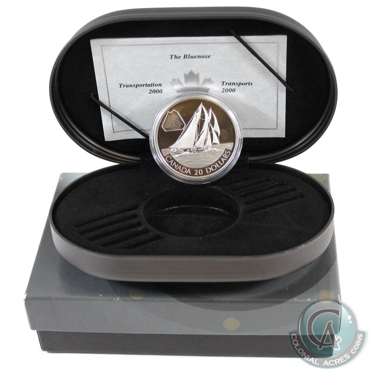 2000 Canada $20 Transportation Series - The Bluenose Ship Sterling Silver Coin (Very Small toning spots on coin)