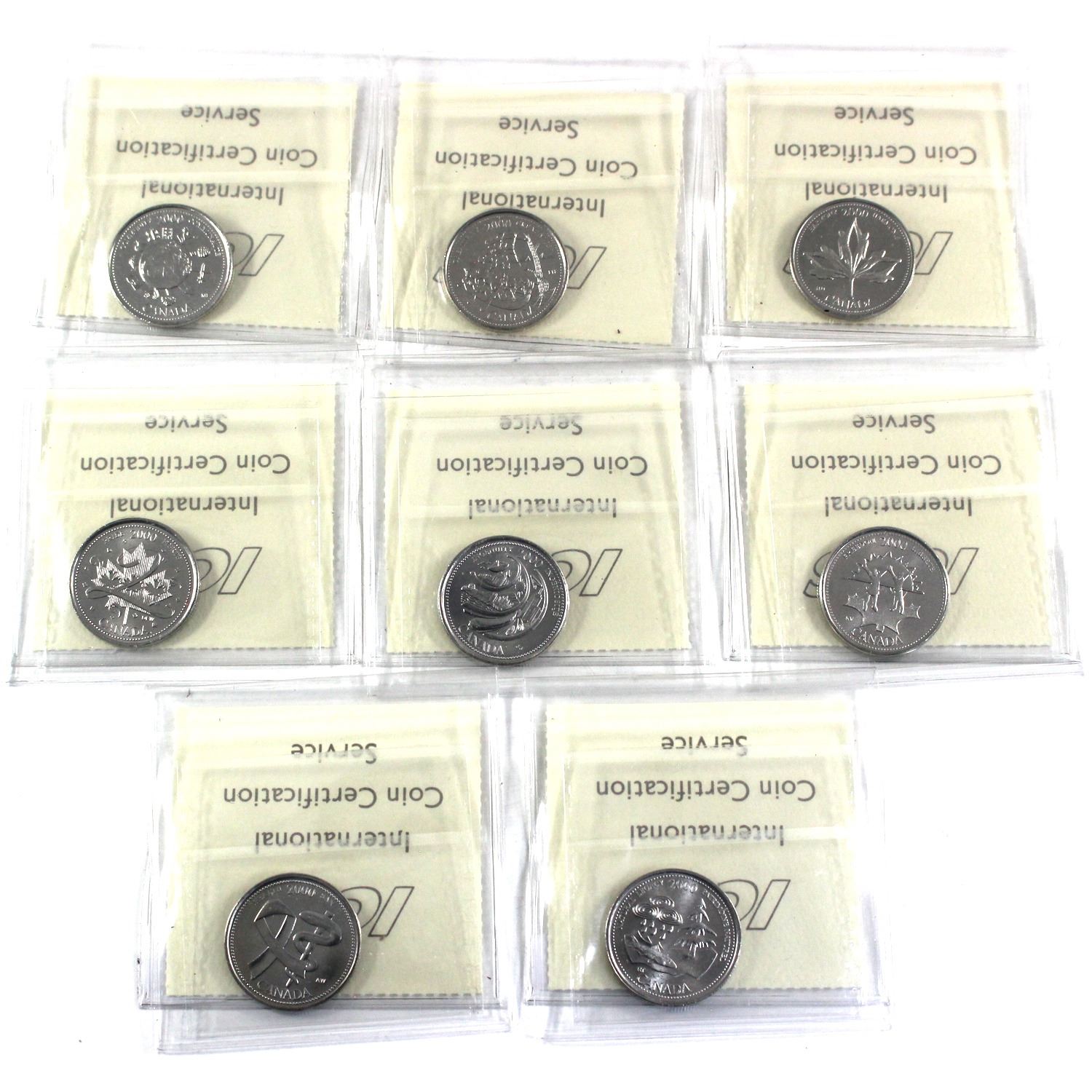 2000 Canada 25-cent ICCS Certified MS-64 - Community, Creativity, Harmony, Pride, Ingenuity, Freedom, Health & Natural Legacy. 8pcs