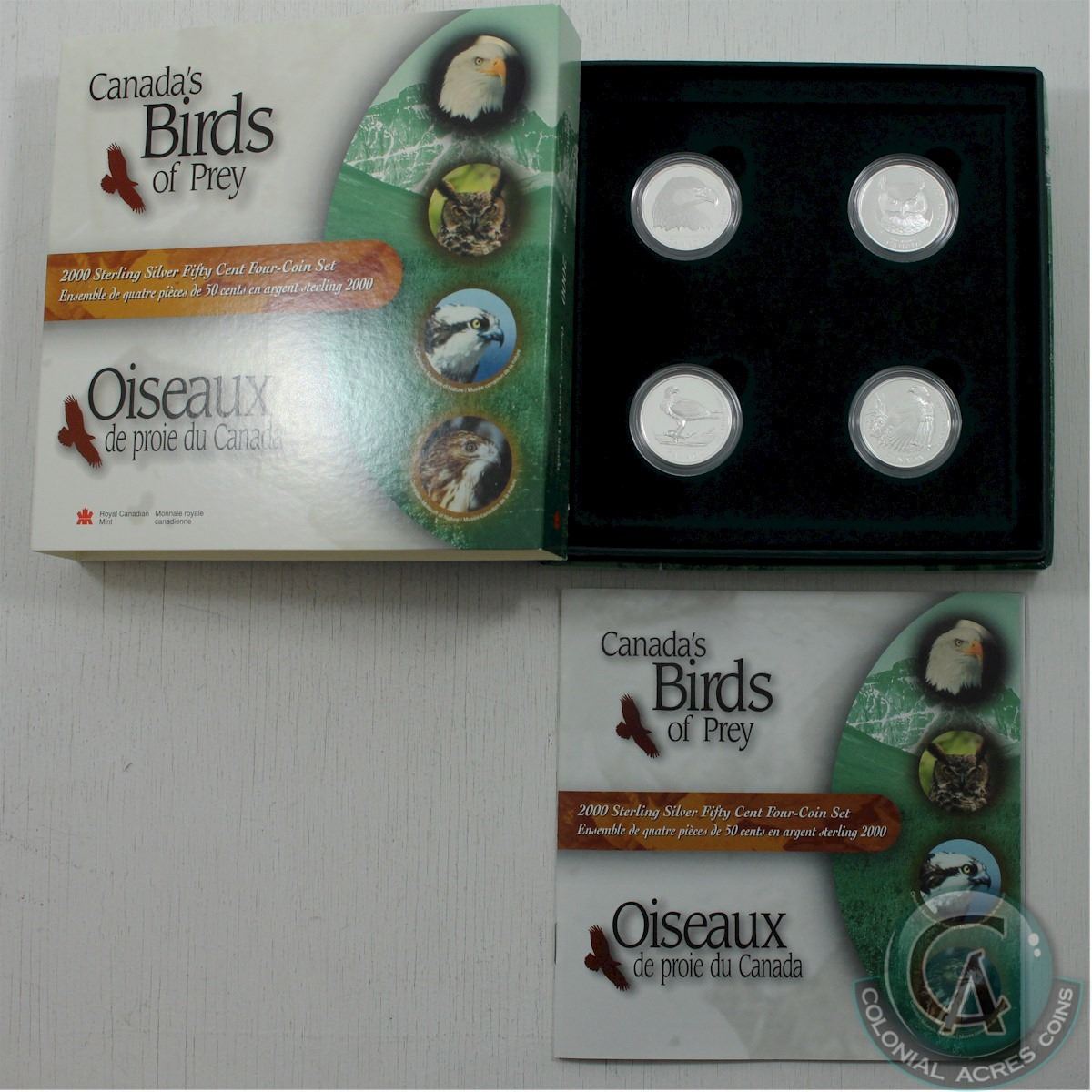 2000 Canada Birds of Prey Proof 4-coin 50-cent set issued by the Royal Canadian Mint.