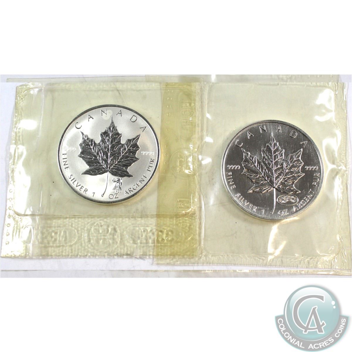 2000 Canada Fireworks Privy & 2004 Virgo Privy Fine Silver Maple Leafs Sealed in Original Sealed Pliofilm (the 2004 Coin is toned). 2pcs (TAX Exempt)