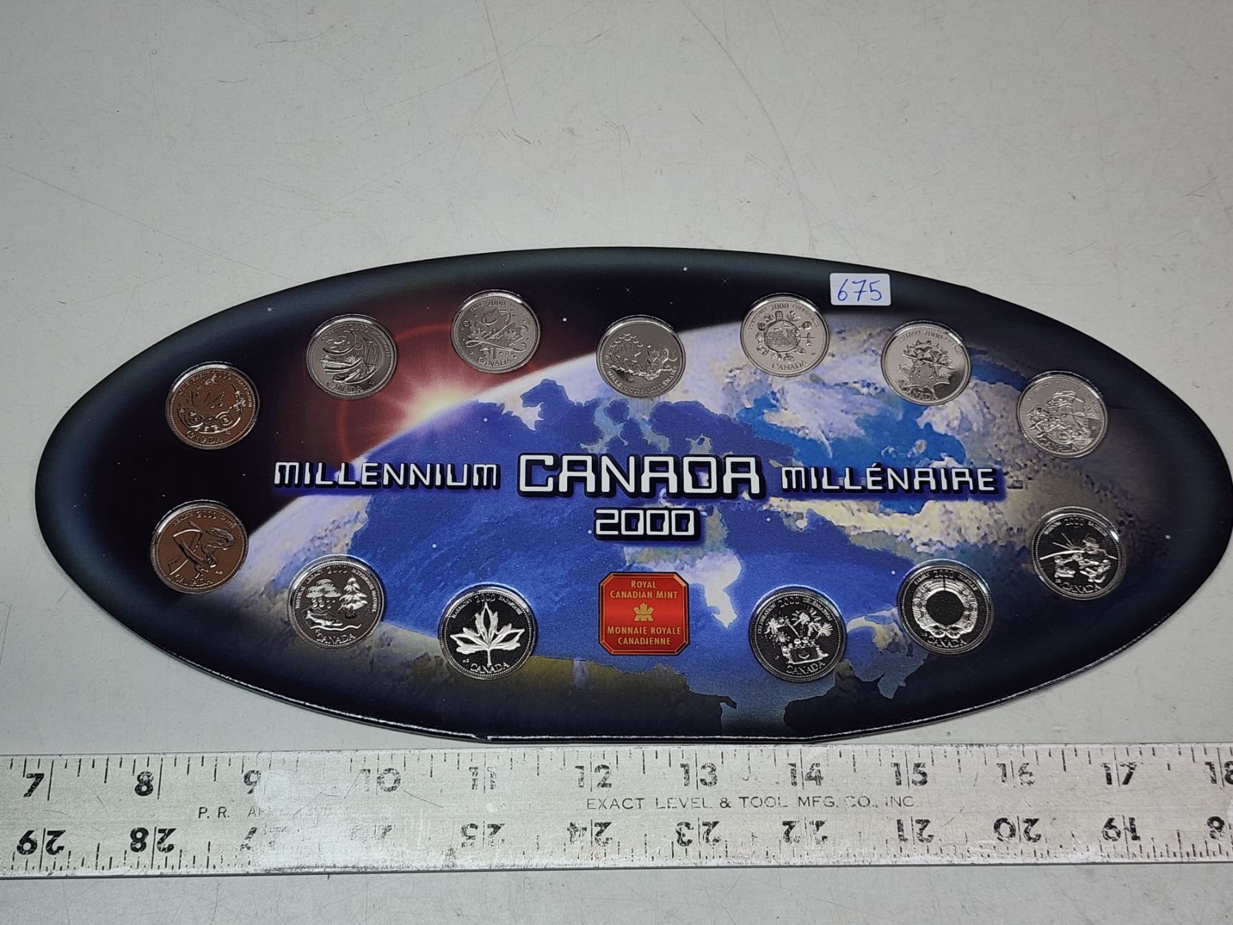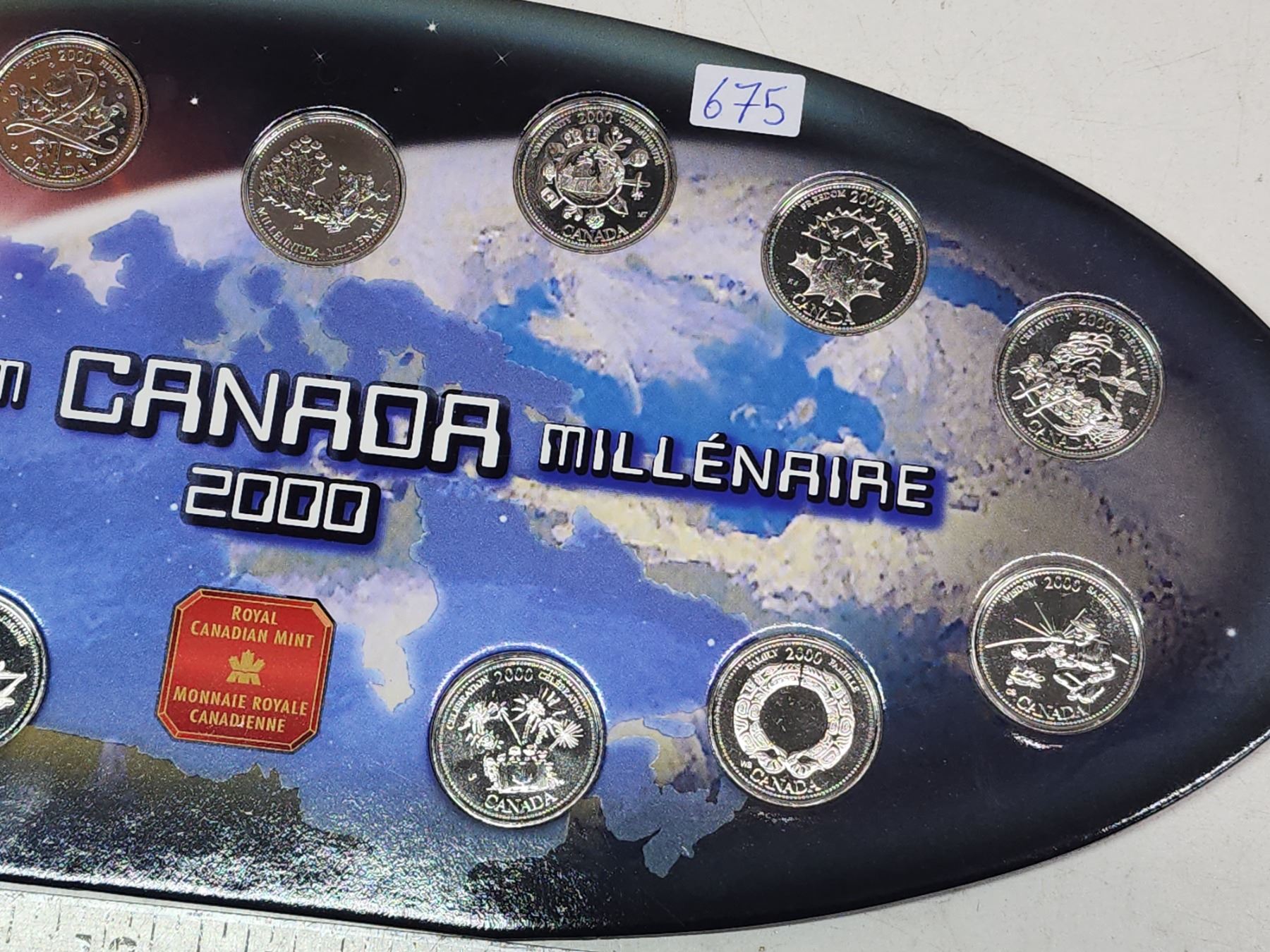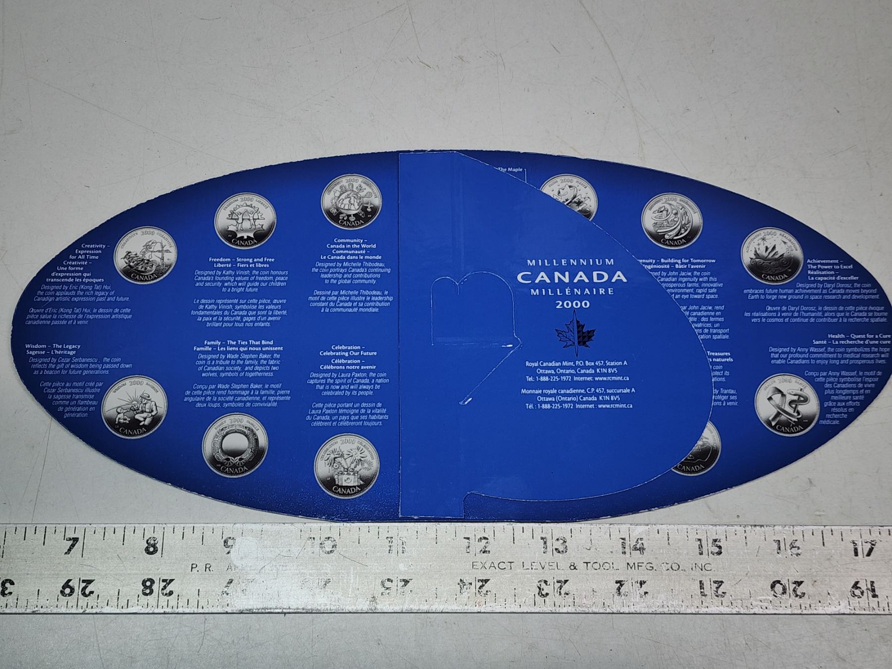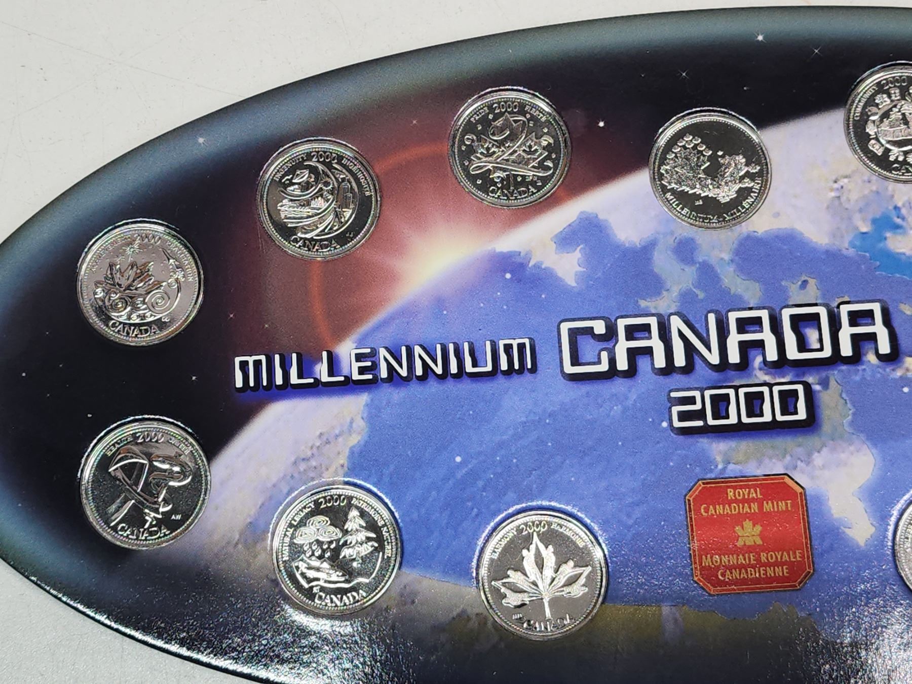 2000 Canada Millennium 25 Cents Set. Complete set of 12 2000 25 Cents plus one Royal Canadian Mint Medal. Housed in its original Royal Canadian Mint holder.