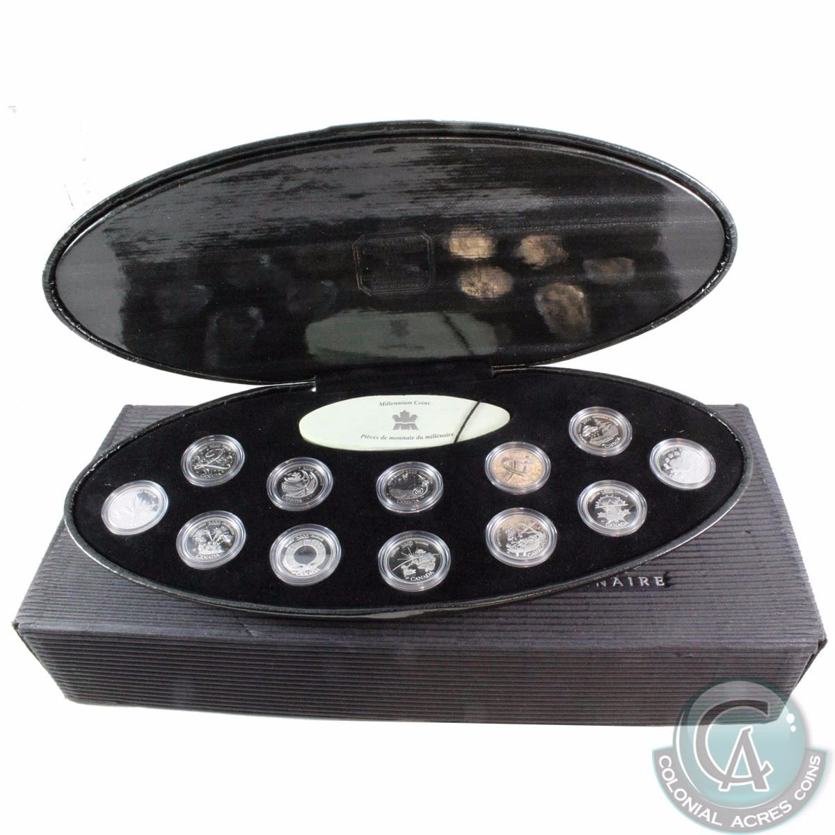 2000 Canada Millennium Proof 12-Coin Sterling Silver 25-cent Set. Comes in original Mint packaging with COA (some coin are lightly toned)