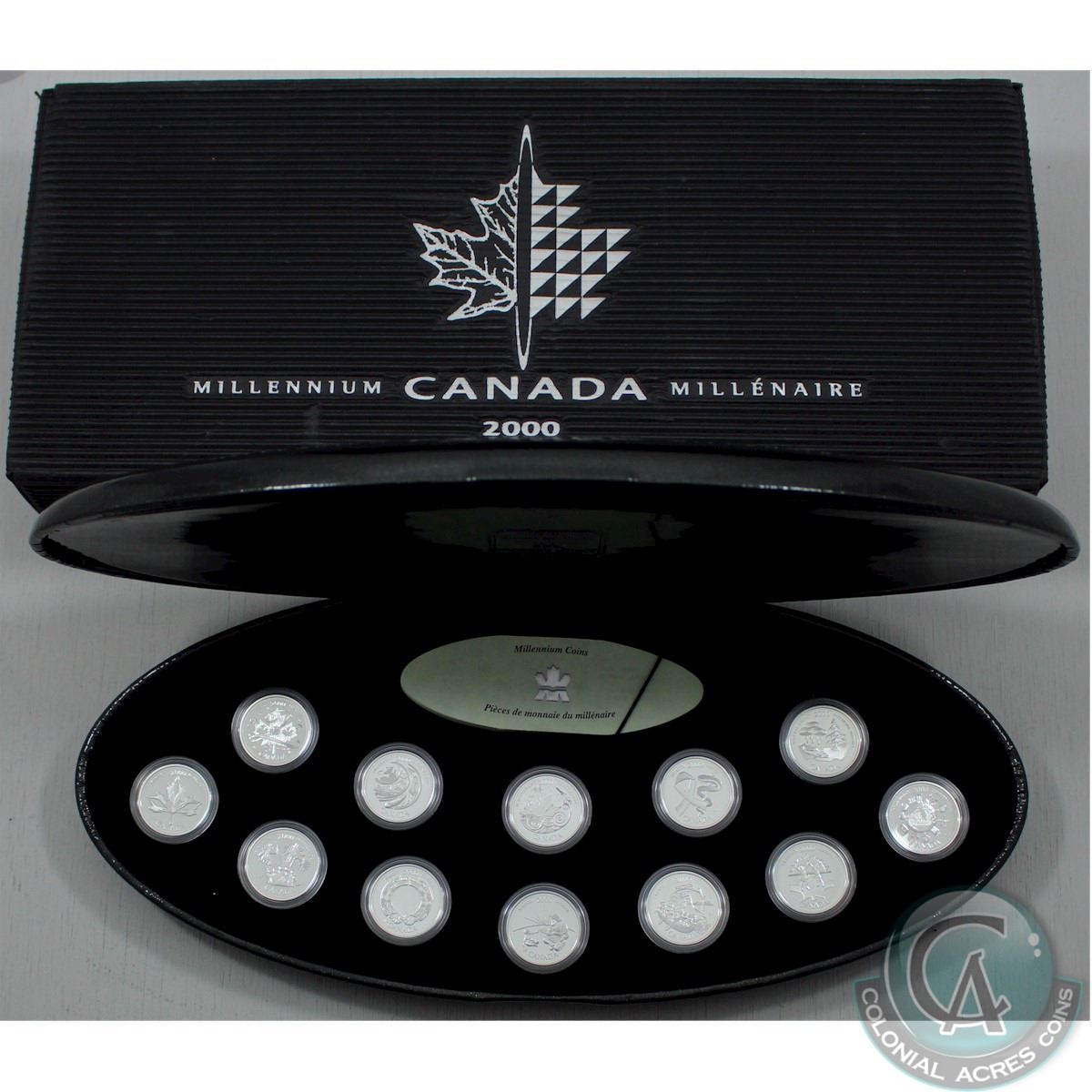 2000 Canada Millennium Proof 12-Coin Sterling Silver 25-cent Set. Comes in original Mint packaging with COA.