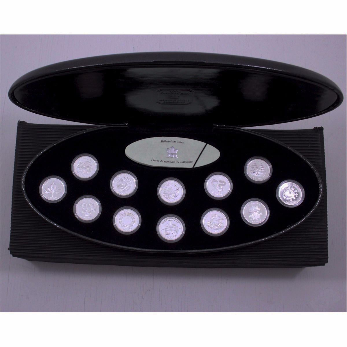 2000 Canada Millennium Proof 12-coin Sterling Silver 25-cent Set. Comes in original Mint packaging with certificates. (tattered outer black cardboard sleeve)