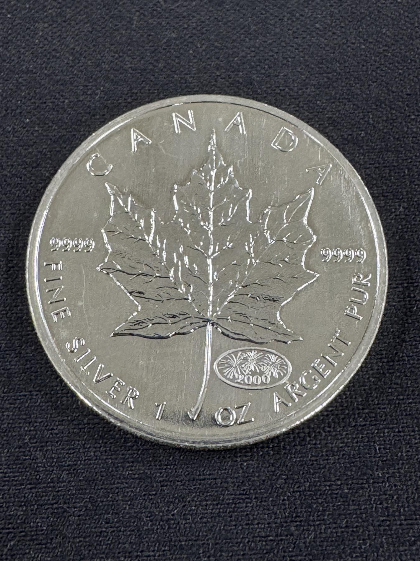2000 Canadian Maple Leaf .9999 Fine Silver One Troy Ounce Coin - Mint Condition