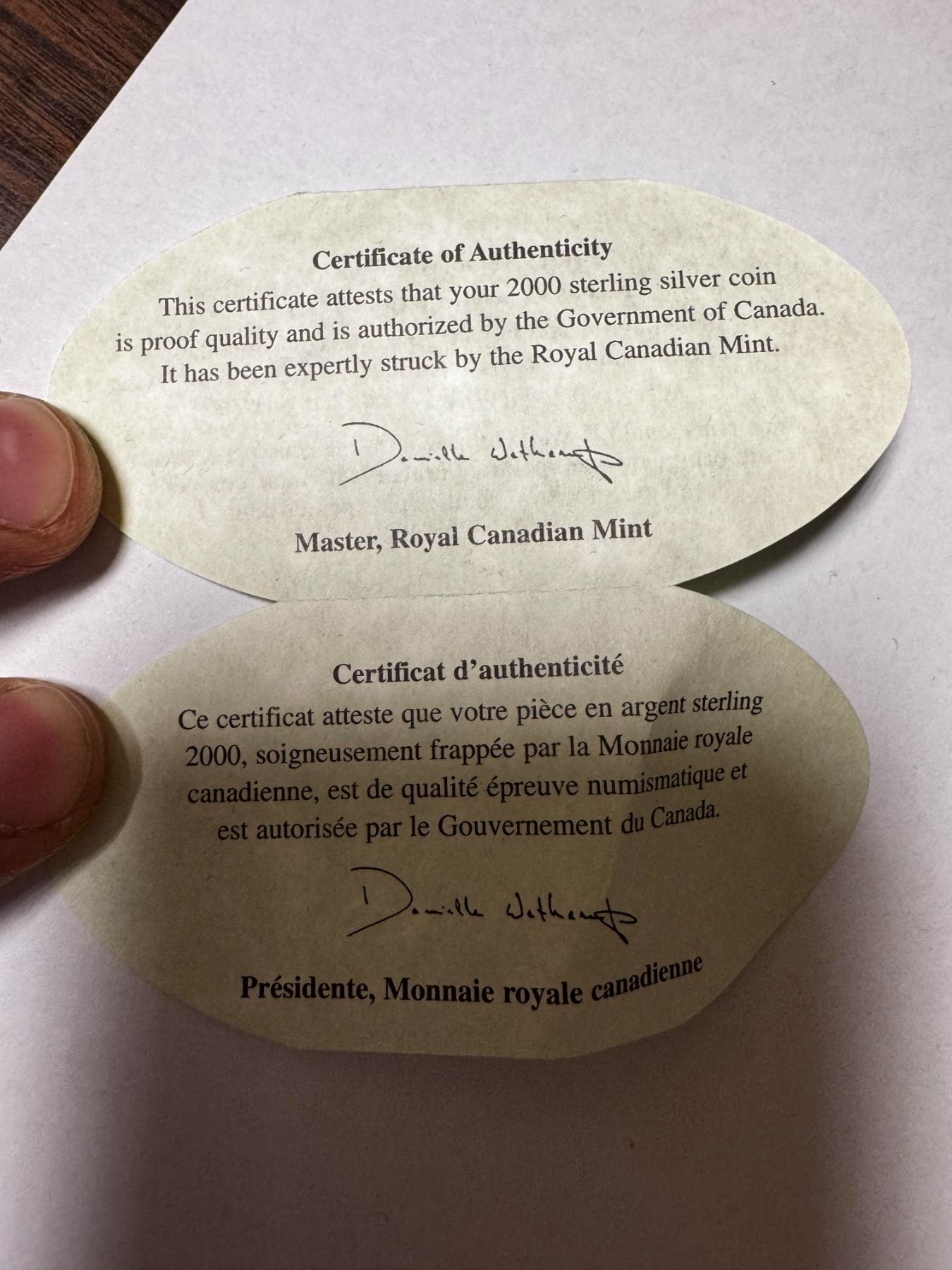 2000 - Canadian Millenium Twenty-Five Cent Silver Coin.