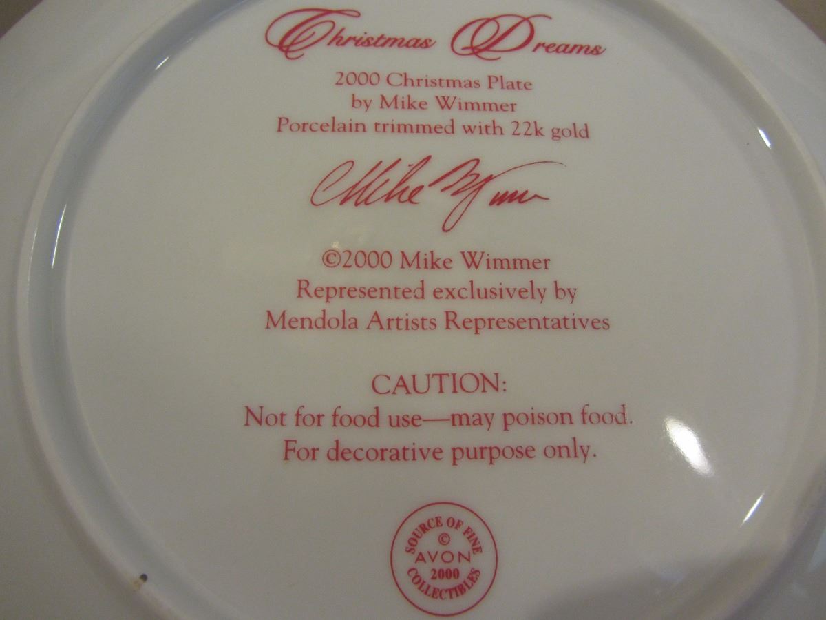 8 1/4" plate, dated 2000 'Christmas Dreams' Avon exclusive by Mike Wimmer, trimmed in 22K gold.
