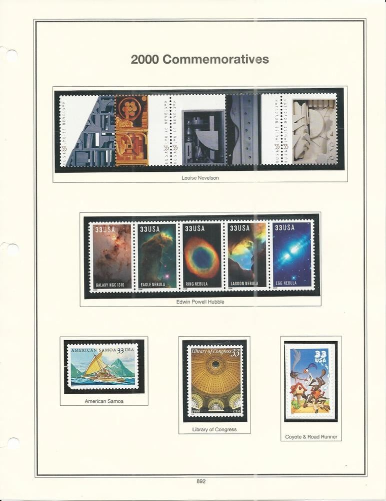 2000 Commemorative Stamp Set: Louise Nevelson, Edwin Powell Hubble, American Samoa, Library of Congress, Coyote and Road Runner