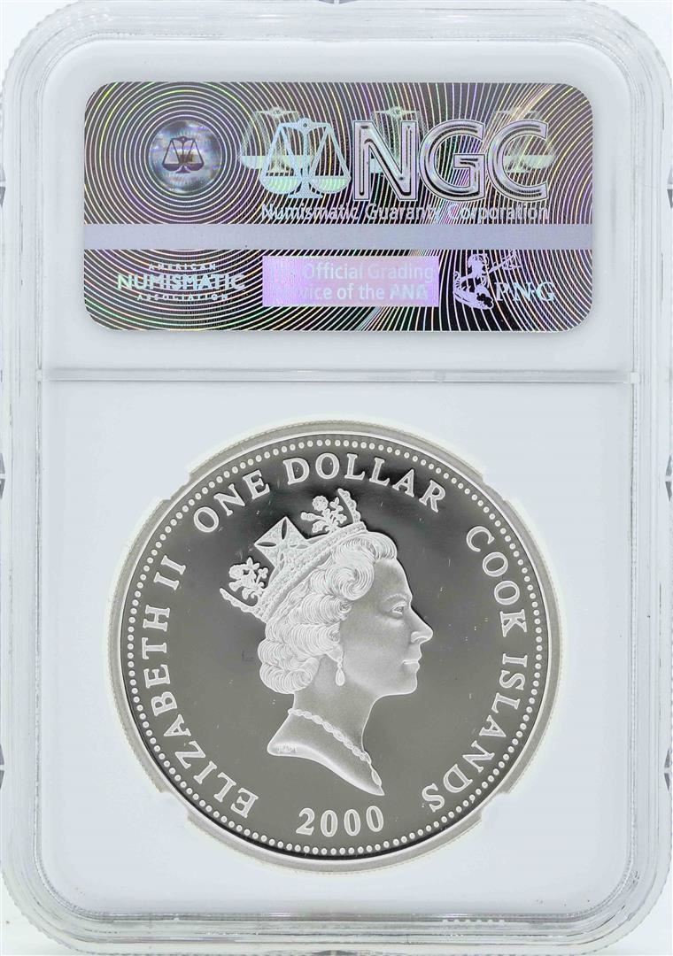 One 2000 Cook Island $1 Queen Mother Silver Coin NGC PF69 Ultra Cameo. NGC Certified.