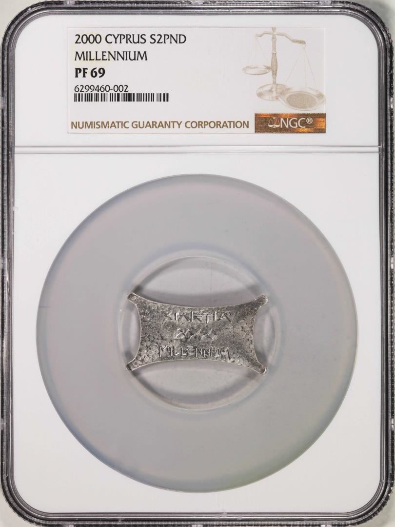 One 2000 Cyprus 2 Pounds Proof Millennium Silver Coin NGC PF69. NGC Certified.