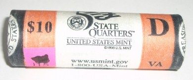 2000-D $10.00 STATEHOOD QUARTER MINT ROLL "VIRGINIA" *RARE MINT ROLL UNC*!! ***Coin, Currency & All Items Listed in this auction - Grades, Conditions and Values are not Safe Deposit Coins LLC Responsibilty. Grades, Condition and Values are determined by Consigner(s) & Buyers ONLY