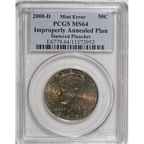 <B>2000-D 50C Kennedy Half Dollar--Improperly Annealed Planchet (Sintered Planchet)--MS64 PCGS.</B></I> <BR><BR><B>Coin Engraver:</B> Gilroy Roberts and Frank Gasparro<BR><BR><b>Shipping:</b> Coins & Currency (<a target="_blank" href="http://www.heritageauctions.com/common/shipping.php">view shipping information</a>)