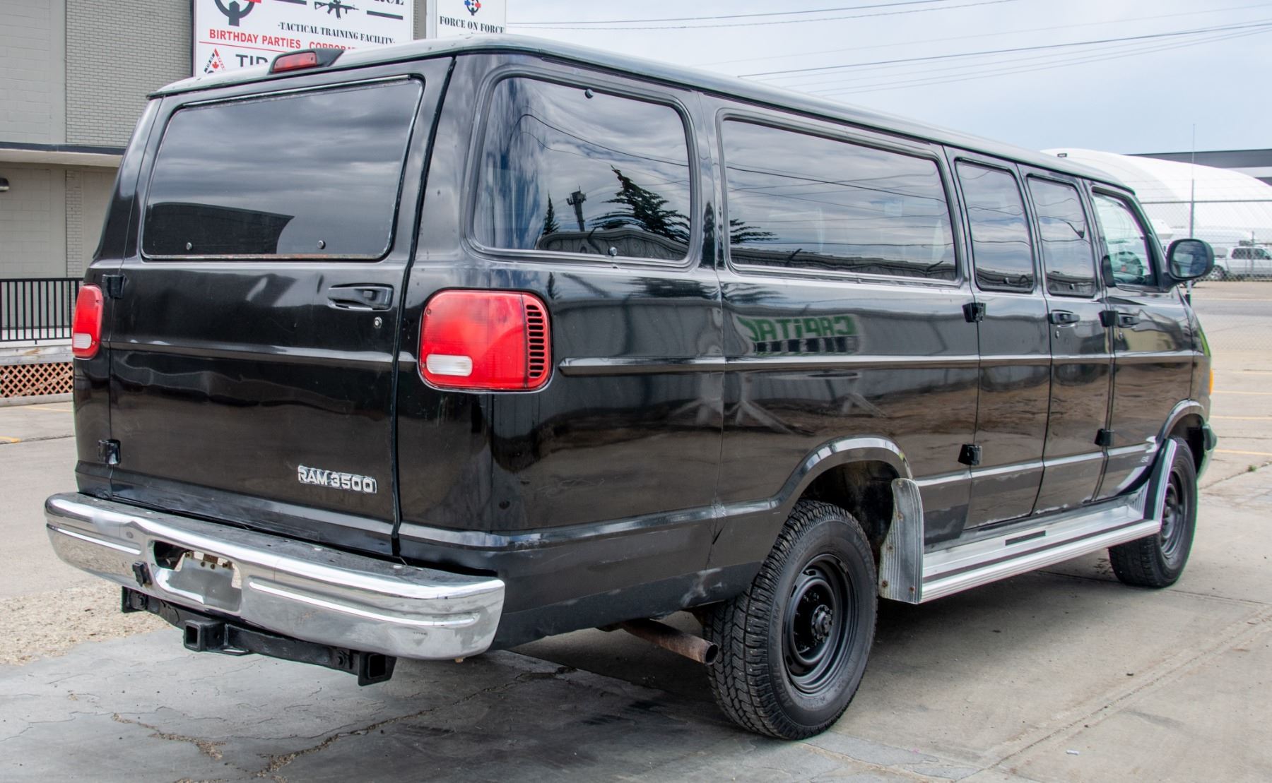 VIN: 2B5WB35Z7YK113623 KM: 179,602 Color: BLACK FEATURES INCLUDE AIR CONDITIONING, CRUISE CONTROL, POWER DOOR LOCKS, POWER WINDOWS, AUTOMATICTRANSMISSION, CLOTH SEATS, WINDSHIELD IS CRACKED, WAS AN ALBERTA GOVERNMENT TRANSPORT VAN, GOOD TIRES. THIS VEHICLE WILL NEED DETAILING/CLEANING. ALL BIDS SUBJECT TO BANK, BAILIFF, OR OWNERS APPROVAL. MUST BE 18 OR OLDER TO PURCHASE OR BID.ALL VEHICLES ARE SOLD AS IS. **ALL ITEMS MUST BE REMOVED BY 5PM FRIDAY, AUGUST 12TH, 2022. ALL REMAINING ITEMS WILL BE SUBJECT TO A $6.00 PER DAY STORAGE CHARGE. ANY ITEMS REMAINING AFTER FRIDAY, SEPTEMBER 2, 2022 WILL BE CONSIDERED FORFEITED. NO REFUNDS WILL BE ISSUED FOR FORFEITED ITEMS.** TO SCHEDULE A PICK UP APPOINTMENT. CLICK HERE