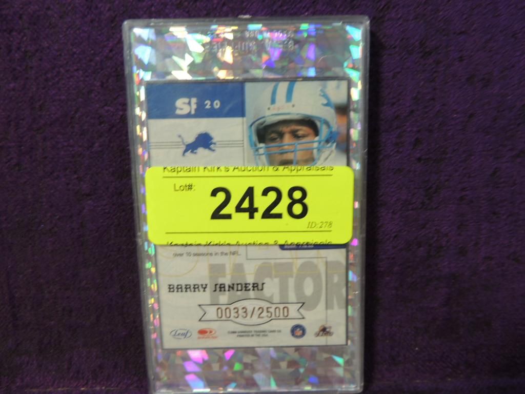 2000 DONRUSS BARRY SANDERS FOOTBALL CARD IN CASE. LIMITED 33/2500 AS SHOWN. SEE PHOTO FOR MORE DETAILS.