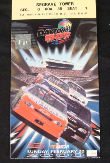 Offered here is 2000 Daytona 500 ticket with Jeff Gordon's race car on the front. It is unused and in mint condition. The ticket is for Segrave Tower, Section G, Row 35, Seat 1. There is an ISC hologram on the top left hand side. The ticket is ready to be framed.