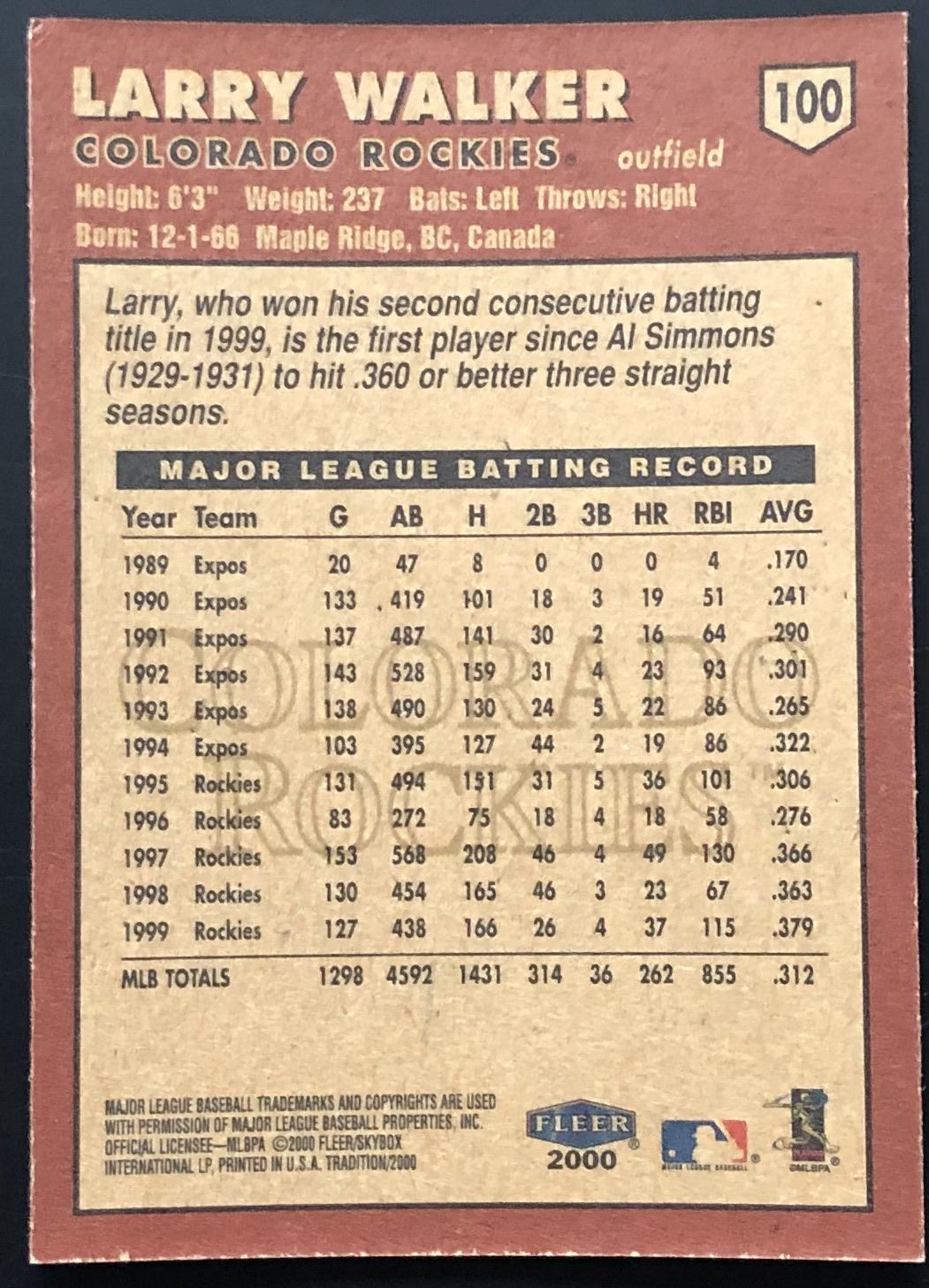Card #100 MLB, baseball, hall of fame