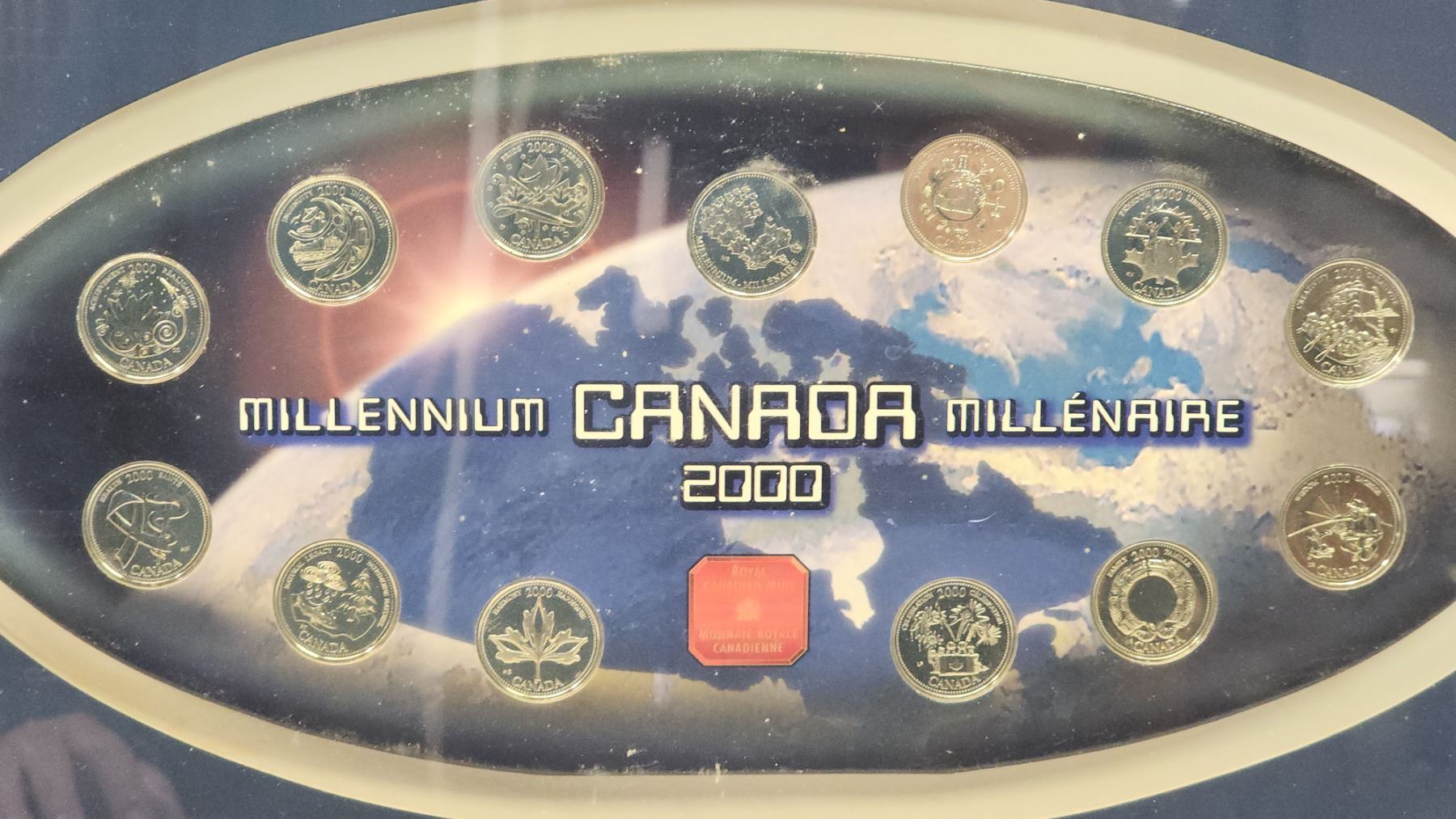 2000 Framed glass, Canadian millenium quarter set - 13pcs