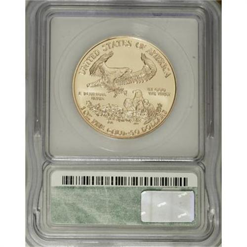 <B>2000 G$50 One-Ounce Gold Eagle MS70 ICG.</B></I> NGC Census: (0/0). PCGS Population (24/0). Numismedia Wsl. Price for NGC/PCGS coin in MS70: $1,200. (#9953)<BR><BR><b>Shipping:</b> Coins & Currency (<a target="_blank" href="http://www.heritageauctions.com/common/shipping.php">view shipping information</a>)