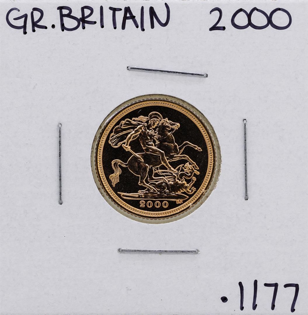 One 2000 Great Britain Elizabeth II 1/2 Sovereign Gold Coin.