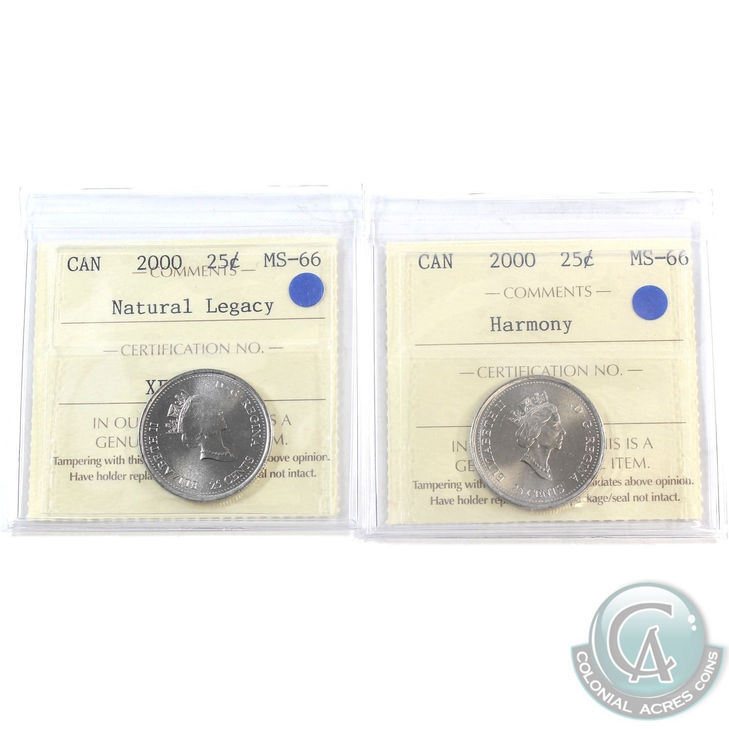 2000 Harmony & 2000 natural Legacy 25-cent ICCS Certified MS-66. 2pcs