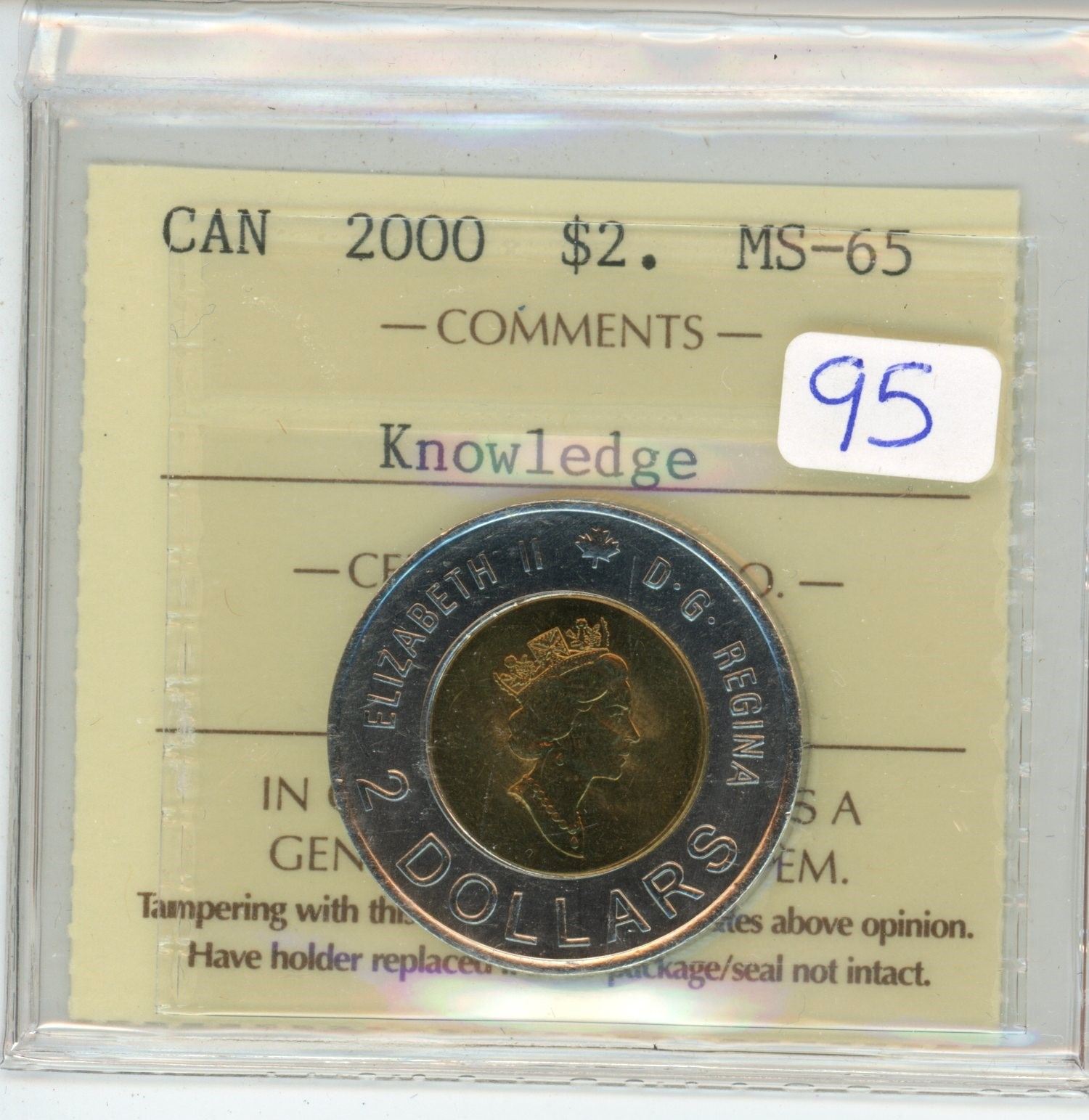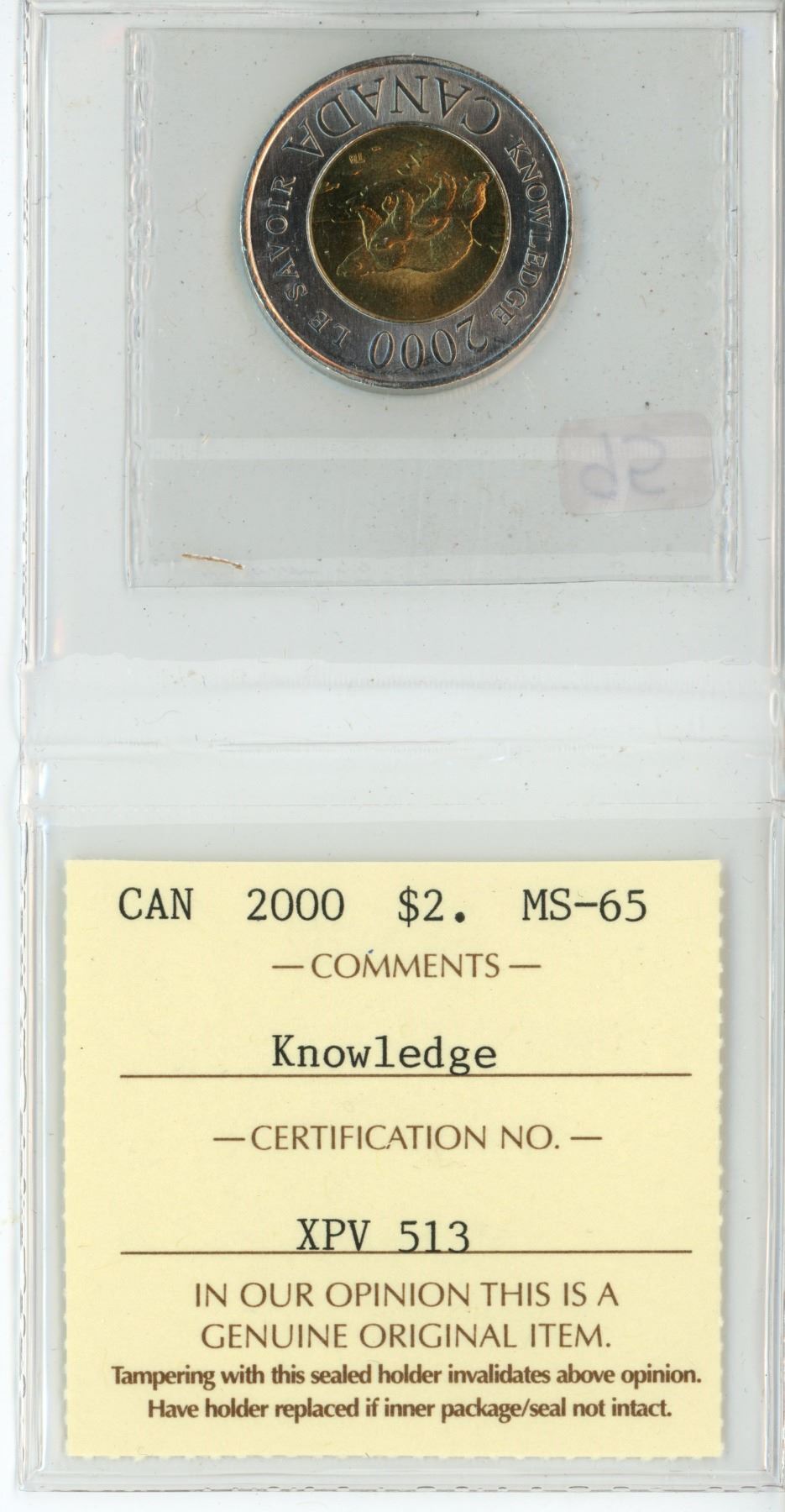2000, ICCS Graded "Knowledge" Canadian 2 dollar toonie coin - MS-65