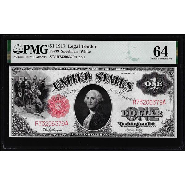 1917 $1 Legal Tender Note Fr.39 PMG Choice Uncirculated 64
