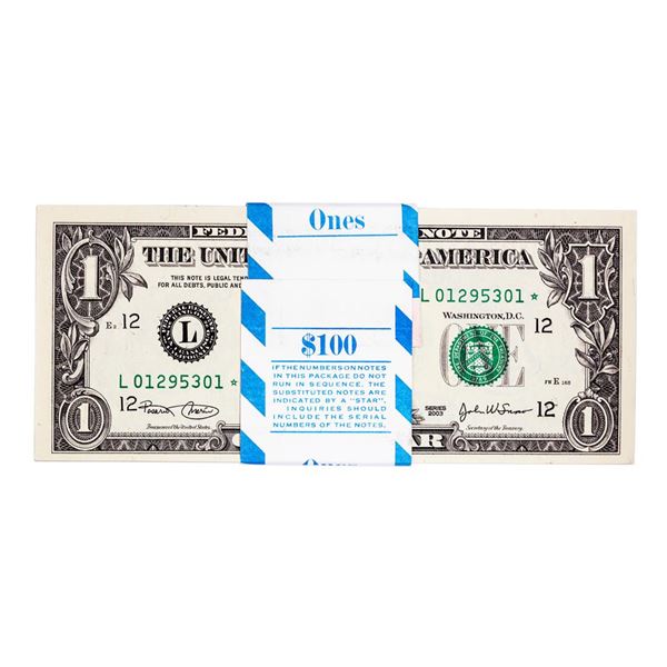 Pack of (100) Consecutive 2003 $1 Federal Reserve STAR Notes San Francisco