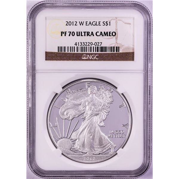 One 2012-W $1 Proof American Silver Eagle Coin NGC PF70 Ultra Cameo. NGC Certified.