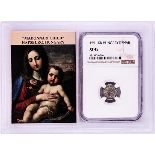One 1550 KB Hungary Denar 'Madonna and Child' Coin NGC AU50. NGC Certified.