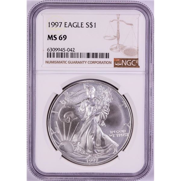 One 1997 $1 American Silver Eagle Coin NGC MS69. NGC Certified.