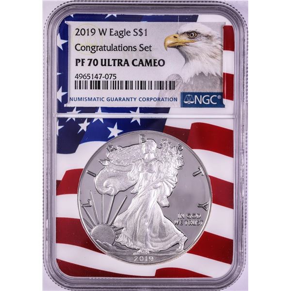 2019-W $1 Proof American Silver Eagle Coin NGC PF70 Ultra Cameo Congratulations Flag