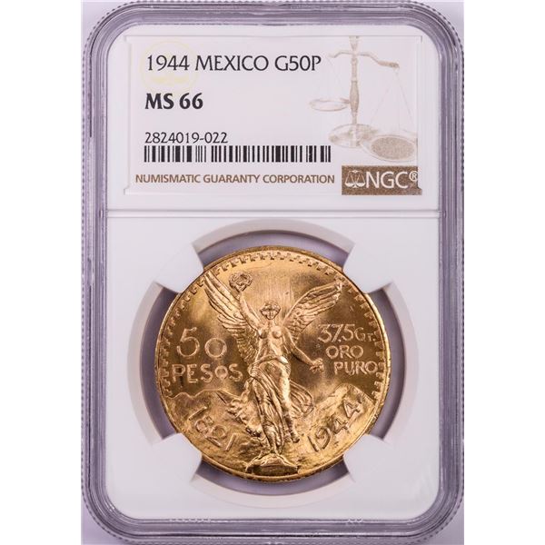 1944 Mexico 50 Pesos Gold Coin NGC MS66