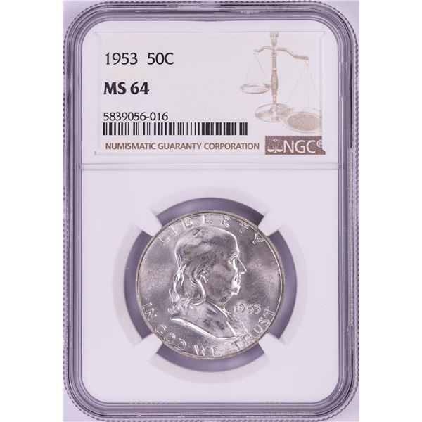 One 1953 Franklin Half Dollar Coin NGC MS64. NGC Certified.