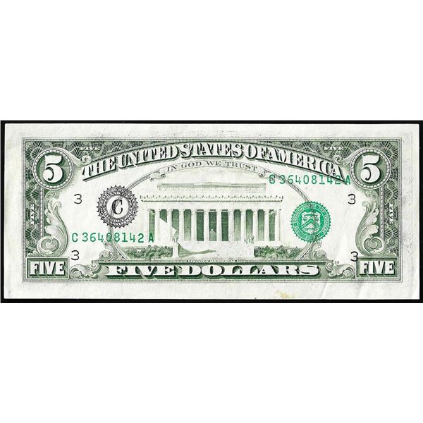 1985 $5 Federal Reserve Note Third Print on Back Error