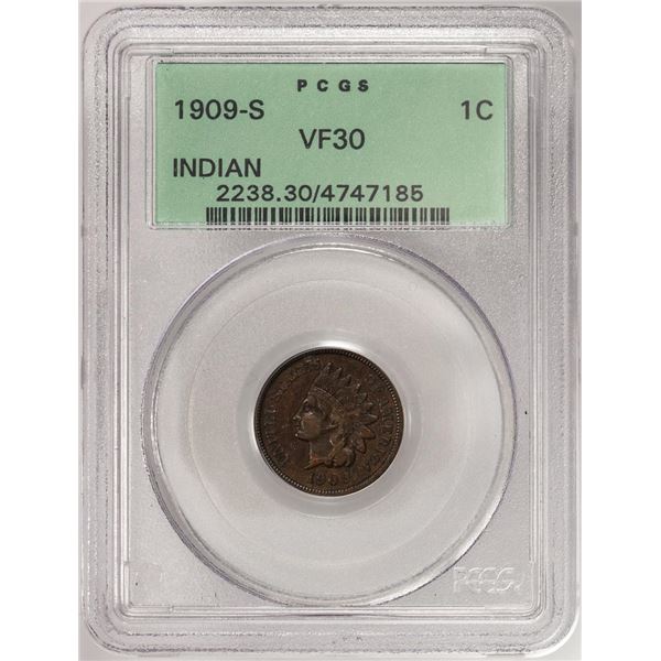 1909-S $1 Indian Head Cent Coin PCGS VF30 Old Green Holder