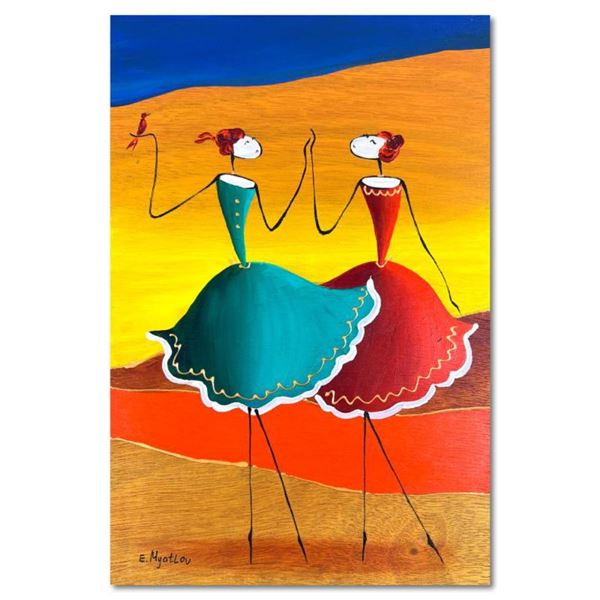 This is an original painting oil on wood panel by Ester Myatlov. Hand signed by the artist, this piece comes with a letter of authenticity. Measures a