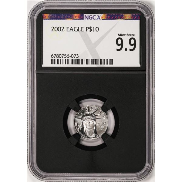 One 2002 $10 Platinum American Eagle Coin NGCX Mint State 9.9. NGCX Certified.