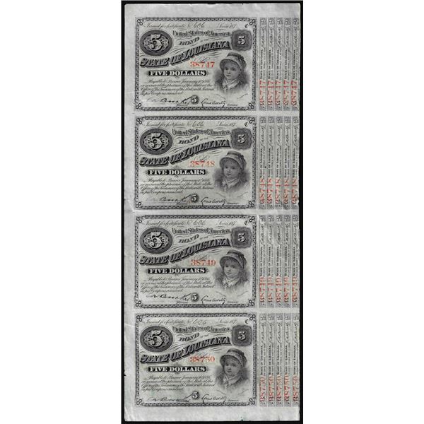 Uncut Sheet of (4) State of Louisiana Baby Bond Obsolete Notes