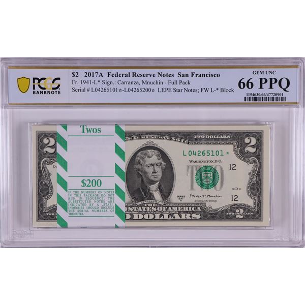 Pack 2017A $2 Federal Reserve STAR Notes San Francisco Fr.1941-L* PCGS Gem UNC 66PPQ