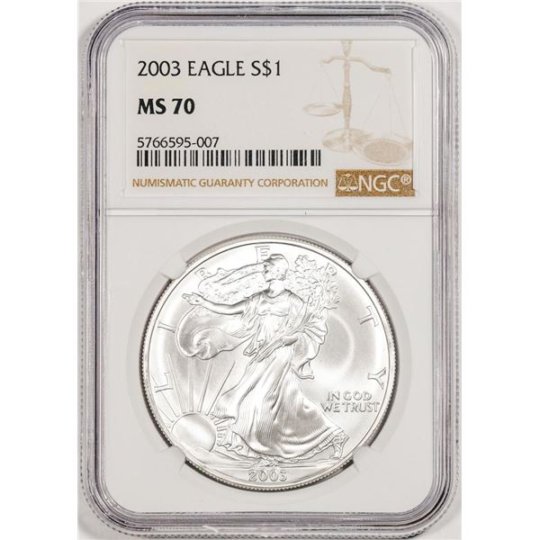 One 2003 $1 American Silver Eagle Coin NGC MS70. NGC Certified.