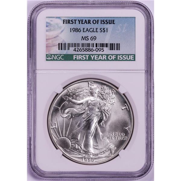 1986 $1 American Silver Eagle Coin NGC MS69 First Year Issue