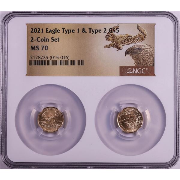 Set of 2021 Type 1 & Type 2 $5 American Gold Eagle Coins NGC MS70